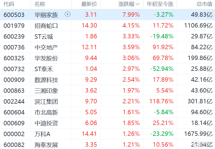 地产股拉升 华丽家族涨8%
