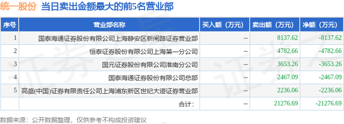 11月17日统一股份(600506)龙虎榜数据:游资上海超短帮上榜