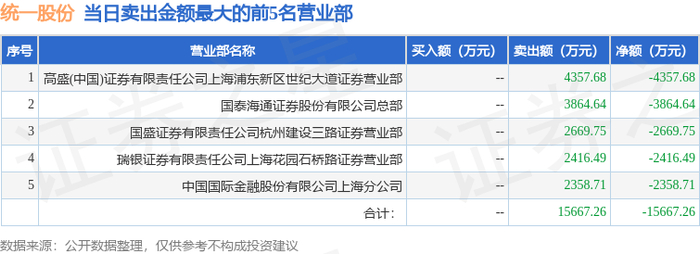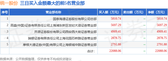 12月30日统一股份(600506)龙虎榜数据