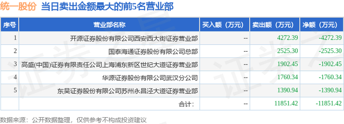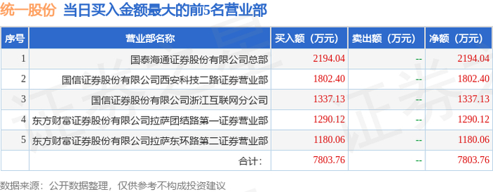 12月31日统一股份(600506)龙虎榜数据