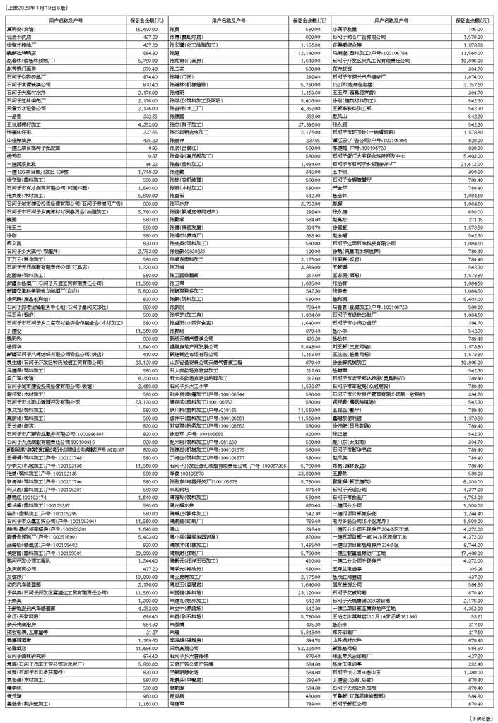 新疆天富能源股份有限公司供电分公司电费保证金退费清单