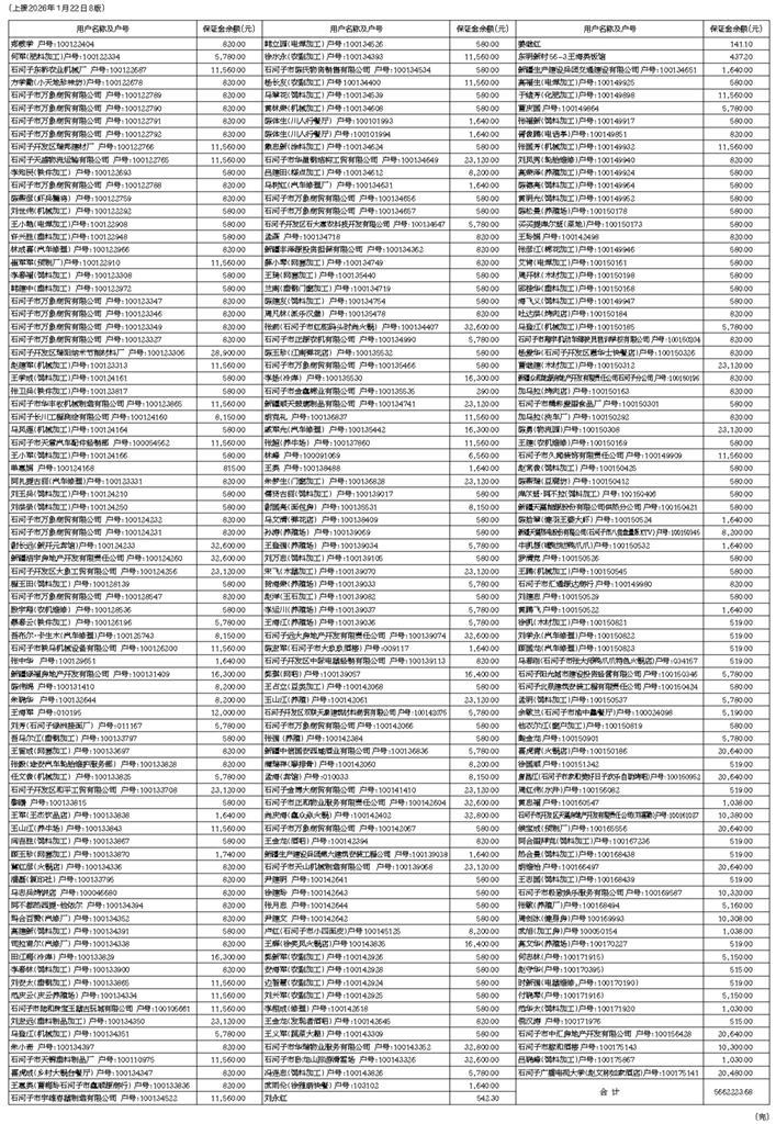 新疆天富能源股份有限公司供电分公司电费保证金退费清单