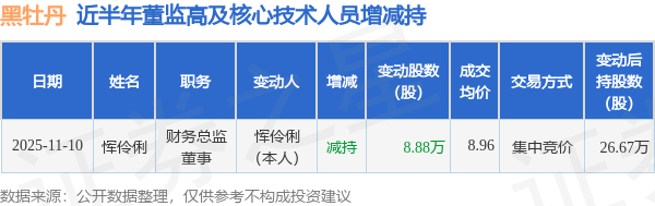 黑牡丹近半年内的董监高及核心技术人员增减持详情如下: