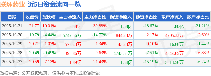 10月31日的资金流向数据方面,主力资金净流入3.38亿元,占总成交额39.88%,游资资金净流出1.58亿元,占总成交额18.67%,散户资金净流出1.8亿元,占总成交额21.21%。