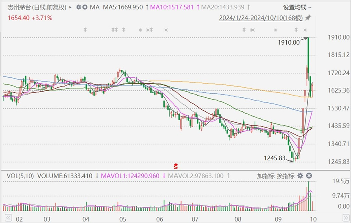 格隆汇10月10日|贵州茅台(600519.SH)涨超3%,截至目前成交额超100亿元,位居A股个股成交榜第九位。