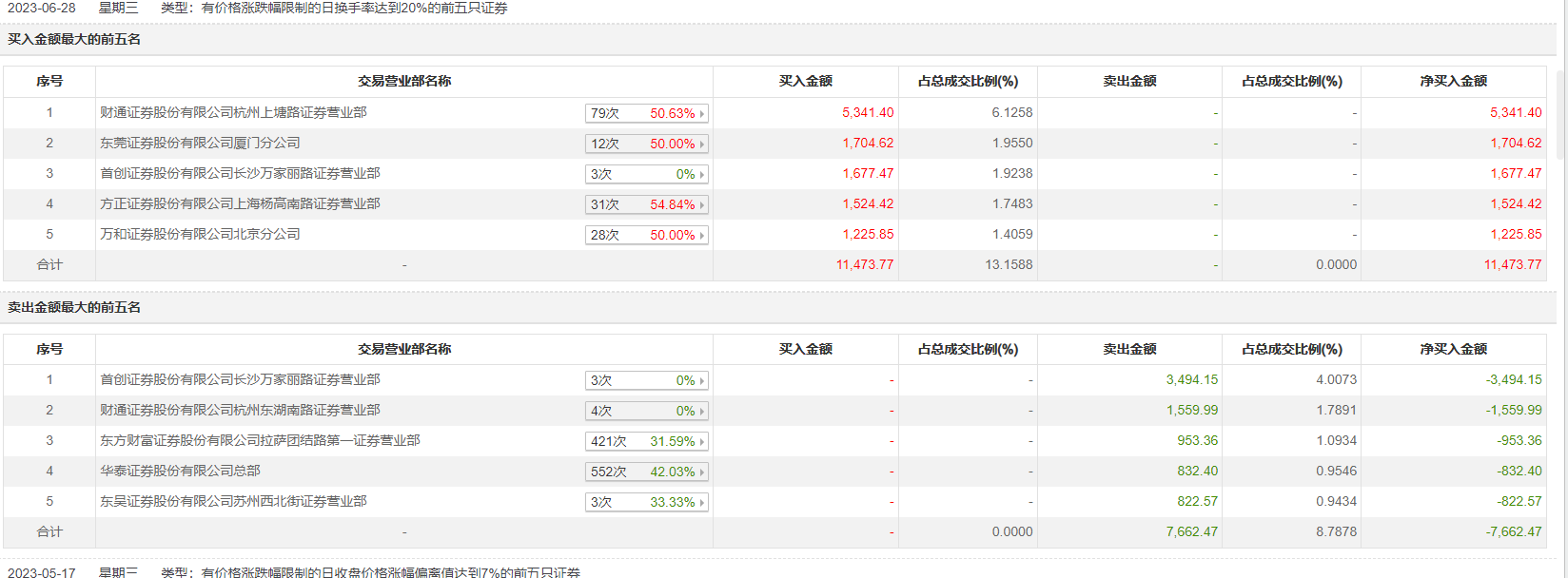 具体来看,财通证券杭州上塘路证券营业部、东莞证券厦门分公司分别买入5341.40万元、1704.62万元;首创证券长沙万家丽路证券营业部、财通证券杭州东湖南路证券营业部分别卖出3494.15万元、1559.99万元。