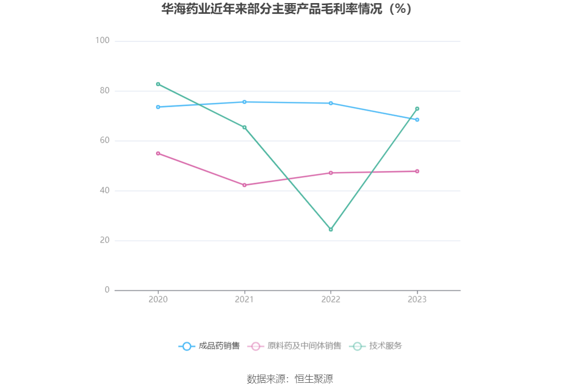 分产品看,成品药销售、原料药及中间体销售、技术服务2023年毛利率分别为68.43%、47.79%、72.87%。
