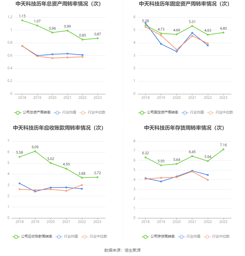 数据统计显示,中天科技近三年营业总收入复合增长率为2.31%,在通信线缆及配套行业已披露2023年数据的9家公司中排名第5。近三年净利润复合年增长率为11.37%,排名4/9。