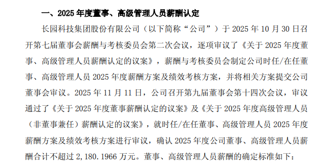 根据公司11月13日公布的《2025年度董事、监事及高级管理人员薪酬认定公告》,董事会确认2025年度董事、高管薪酬合计上限为2180.1966万元。其中,董事长及相关人员年度薪酬不超过517.0833万元;其他在公司担任职务的董事薪酬上限为661.68万元;非董事兼任的高管层薪酬上限则高达895.8333万元。