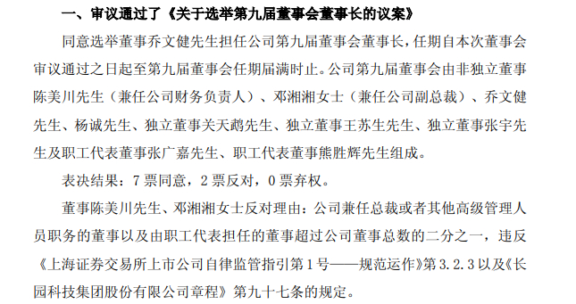 9月26日,董事会选举乔文健为新一任董事长,表决结果为7票同意、2票反对,投下反对票的,正是第一大股东珠海格力金融投资管理有限公司派出的董事代表。公司权力更迭背后,董事会内部裂痕已然显现。