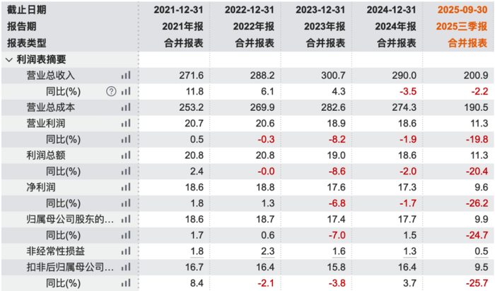 毛利率也从2024年的15.8%,下跌到2025年中的13.7%。