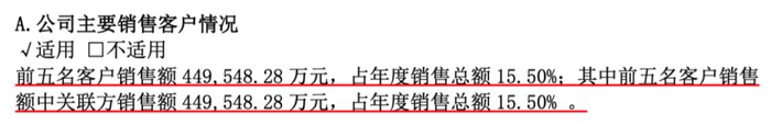 但没想到一查公告,发现前五大客户(销售占比为15.5%),居然全是关联方。