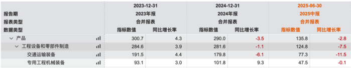 这导致2025年上半年收入的下滑,下滑最多的就是交通运输设备。