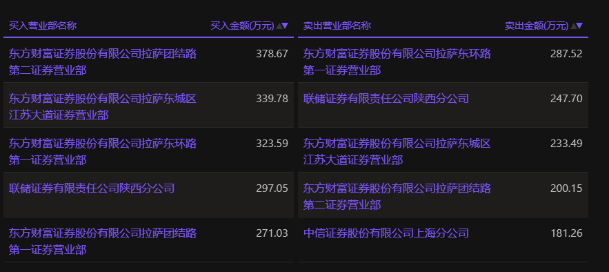 8月11日,*ST交昂今日涨停,全天换手率达6.66%,振幅达8.14%。龙虎榜数据显示,8月10日至8月11日期间,上榜营业部席位合计净买入460万元。其中,东方财富证券拉萨团结路第二证券营业部、东方财富证券拉萨东城区江苏大道证券营业部分别买入378.67万元、339.78万元;东方财富证券拉萨东环路第一证券营业部、联储证券陕西分公司分别卖出287.52万元、247.7万元。