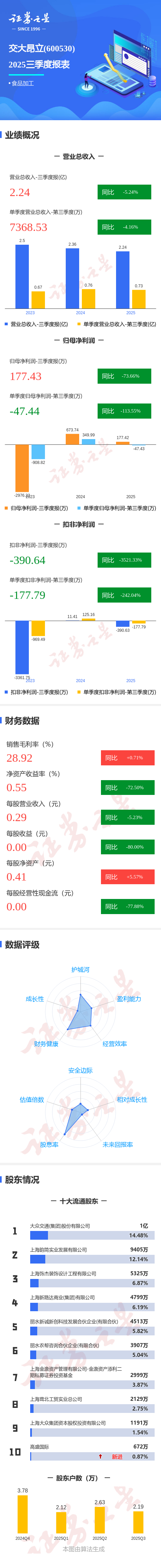 图解交大昂立三季报:第三季度单季净利润同比下降113.55%