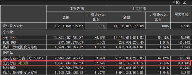 中报显示,华润三九处方药收入约48亿元,同比增长高达100.18%。
