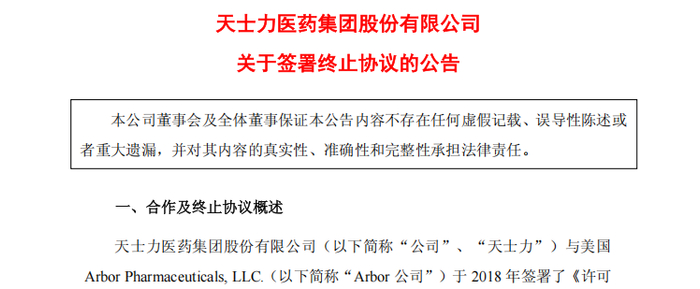 本次终止协议的核心内容包括:许可协议自终止日起失效;Arbor公司需停止使用所有相关知识产权;并在30日内向天士力移交或销毁所有与产品相关的注册材料、临床试验数据等文件。