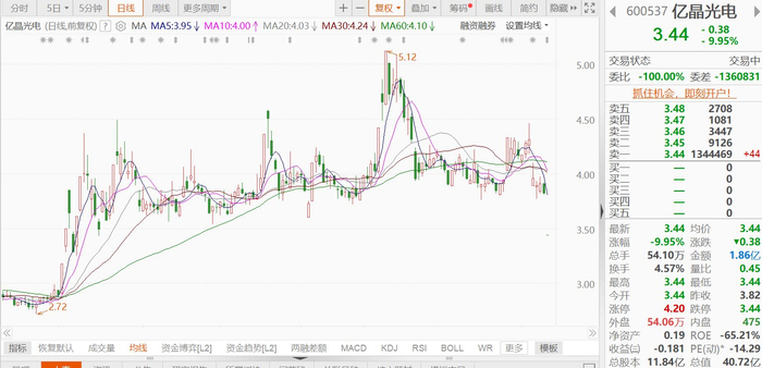 A股异动丨亿晶光电跌停创逾半年新低,或将被实施退市风险警示