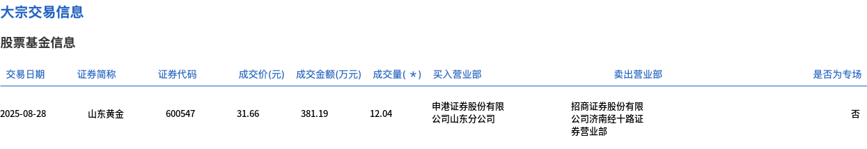 山东黄金今日大宗交易折价成交12.04万股,成交额381.19万元
