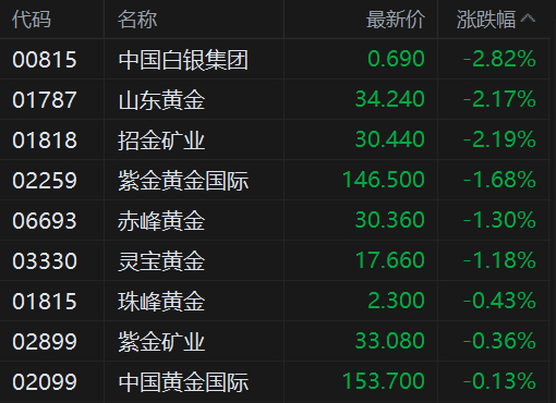 港股异动丨黄金股集体弱势,山东黄金跌超2%,金银价格走低