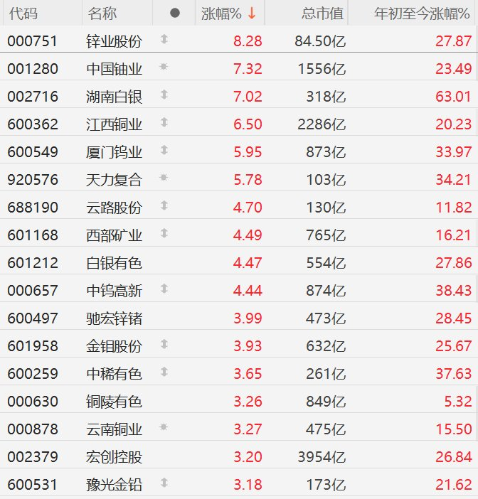 A股异动丨金银铜锡价齐创新高,有色金属股继续走强,江西铜业、厦门钨业创历史新高