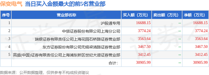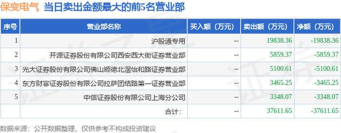 11月13日保变电气(600550)龙虎榜数据:北向资金净卖出3150.21万元