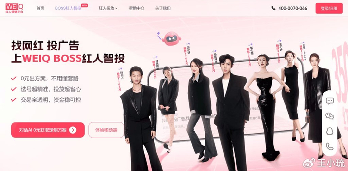 更让我眼前一亮的是9月底上线的WEIQ BOSS红人智投。据半年报披露,WEIQ 平台累计注册商家超20万、连接350万+红人资源。而此次平台升级正是针对20万中小商家“选号难、效果难测、操作复杂”的痛点 —— 依托 Deepseek 大模型,将传统团队数天完成的投放方案压缩至数十秒 AI 生成,投后还能实时追踪曝光、点击、转化全链路数据,同时支持抖音、小红书等多平台统一管理与预算自动优化。这种“专业营销能力普惠化”的落地,远比 “AI 升级” 的概念更有价值 —— 对中小企业而言,“能用、好用、有效”的工具才是真需求。