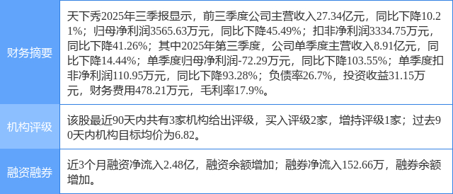 2025年8月26日,开源证券研究员方光照发布了对天下秀的研报《公司信息更新报告:业绩短期波动,“AI+出海”驱动长期成长》,该研报对天下秀给出“买入”评级。研报中预测公司2025-2027年营业收入分别为38.0/40.4/42.5(前值为45.9/47.9)亿元,归母净利润分别为0.8/1.0/1.2(前值为1.2/1.6)亿元,当前股价对应PS分别为2.6/2.4/2.3倍,看好公司AI、出海、创新业务驱动业绩修复,维持“买入”评级。证券之星数据中心根据近三年发布的研报数据计算,该研报作者对此股的盈利预测准确度为7.73%。