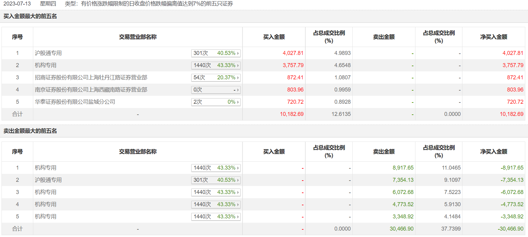 康缘药业7月13日跌停,龙虎榜数据显示,上榜营业部席位全天成交4.06亿元,占当日总成交金额比例为50.35%。其中,买入金额为1.02亿元,卖出金额为3.05亿元,合计净卖出2.03亿元。