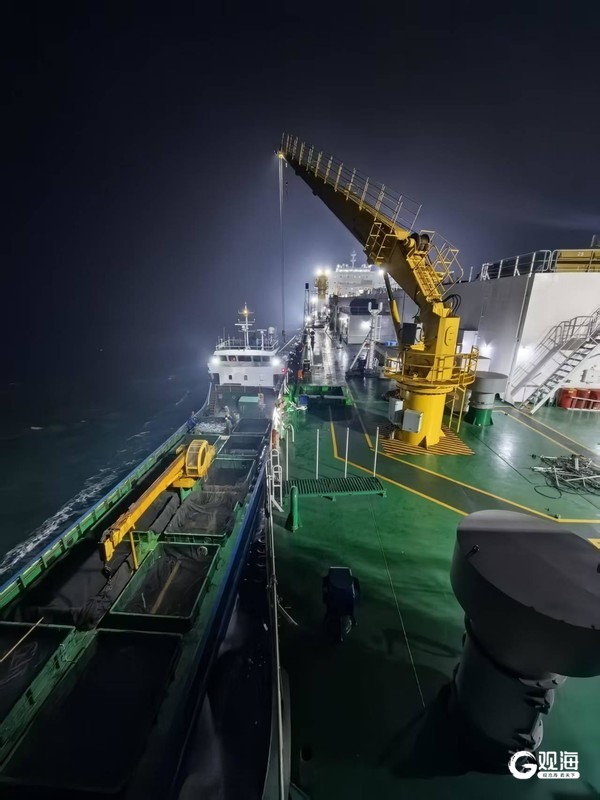 本次入舱作业历时两天,共成功入舱大西洋鲑鱼苗2.5万余尾。面对海上风浪较大的复杂环境,现场团队灵活应对,精心组织,采用吊装和侧舷滑道入舱相结合的方式,鱼苗运输和入舱过程的成活率高达99.7%,展现了工船养殖模式的高效与可靠。