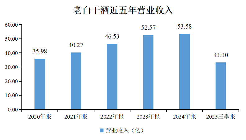 老白干酒目前主要从事白酒的生产与销售,旗下主要产品包括衡水老白干系列酒、乾隆醉系列酒、文王贡系列酒、武陵系列酒及孔府家系列酒,是各自区域内的地方知名品牌,在华北地区尤其河北市场具有领先的行业地位。2025年前三季度实现营收33.30亿元,同比下降18.53%,归母净利润4.00亿元,同比下降28.04%。