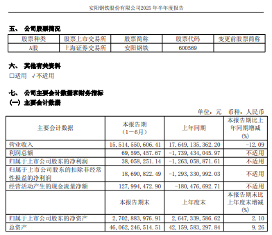 值得关注的是,安阳钢铁2025年半年报显示,上半年公司共实现营业收入155.15亿元,同比下滑12.09%;但归母净利润为3805.83万元,同比实现扭亏为盈。(文馨)