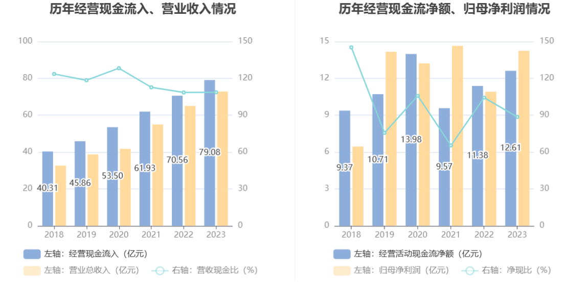 2023年,公司营业收入现金比为108.61%,净现比为88.56%。