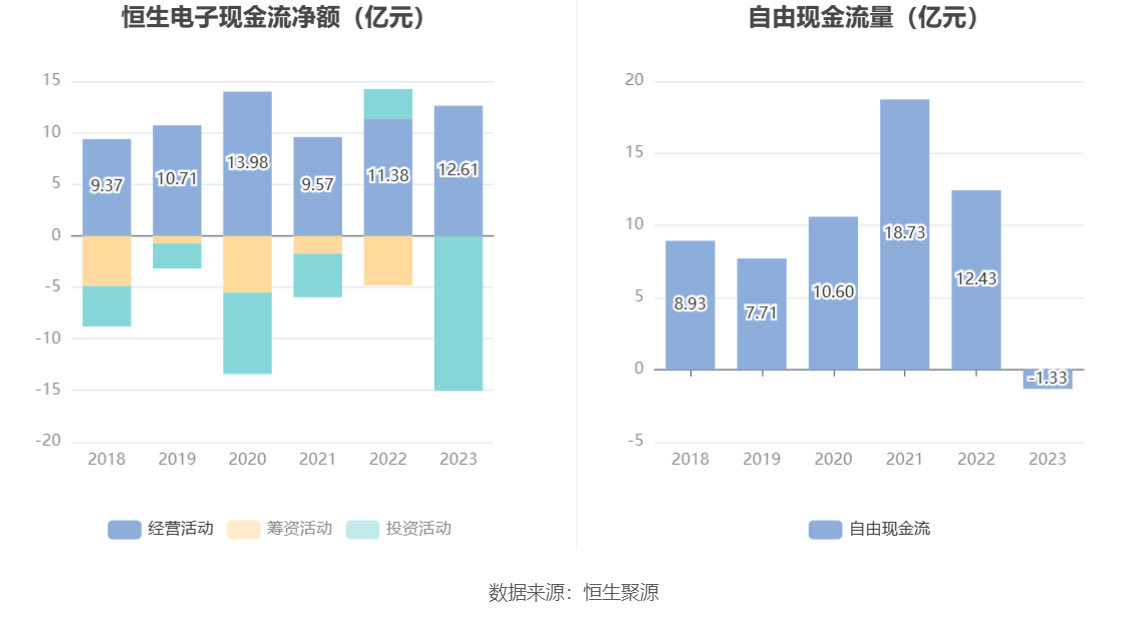 进一步统计发现,2023年公司自由现金流为-1.33亿元,上年同期为12.43亿元。