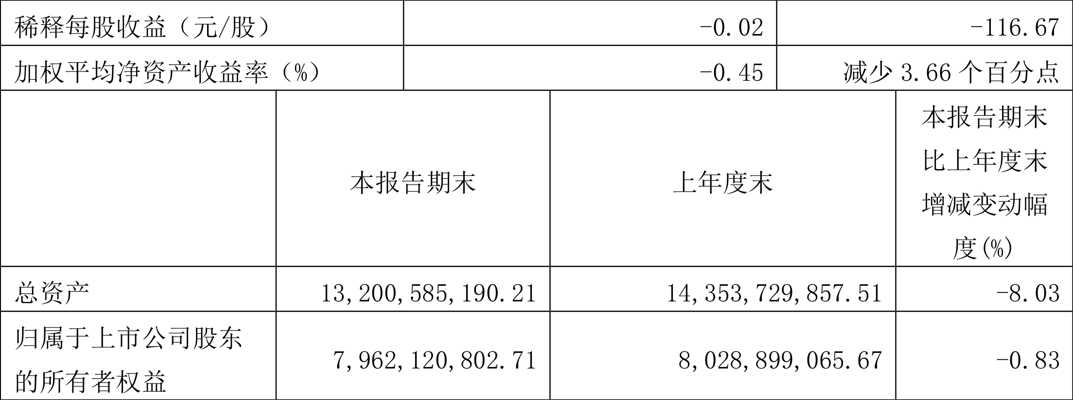 数据显示,2024年第一季度公司加权平均净资产收益率为-0.45%,较上年同期下降3.66个百分点;公司2024年第一季度投入资本回报率为-0.50%,较上年同期下降3.22个百分点。