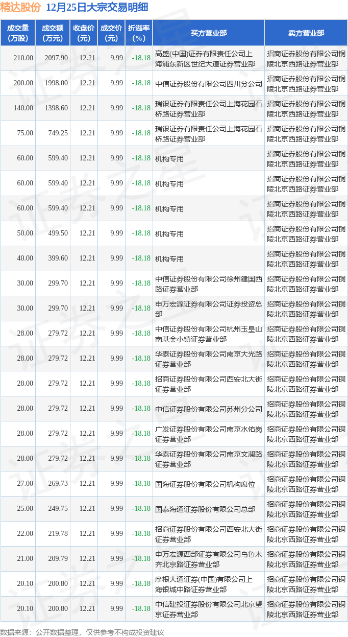 12月25日精达股份现23笔折价18.18%的大宗交易 合计成交1.26亿元