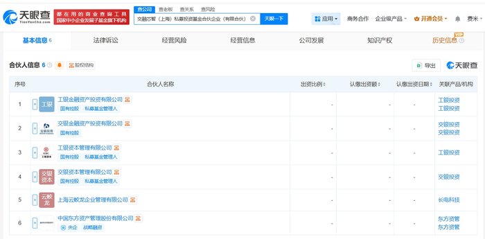 雷达财经讯,天眼查App显示,2月28日,交融芯智(上海)私募投资基金合伙企业(有限合伙)成立,执行事务合伙人为交银资本管理有限公司、工银资本管理有限公司,出资额13.46亿人民币,经营范围为以私募基金从事股权投资、投资管理、资产管理等活动,创业投资,由工银金融资产投资有限公司、交银金融资产投资有限公司、长电科技(600584)旗下上海云鲛龙企业管理有限公司等共同出资。