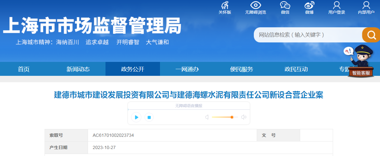建德市城市建设发展投资有限公司与建德海螺水泥有限责任公司新设合营企业案