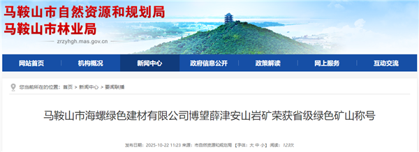 砂石骨料网获悉,经过创建、申报、公示、复核等遴选程序,马鞍山市海螺绿色建材有限公司博望薛津安山岩矿成功入选安徽省省级三星级开发先进型绿色矿山。10月21日,马鞍山市自然资源和规划局党组成员/副局长许永中为其授牌。