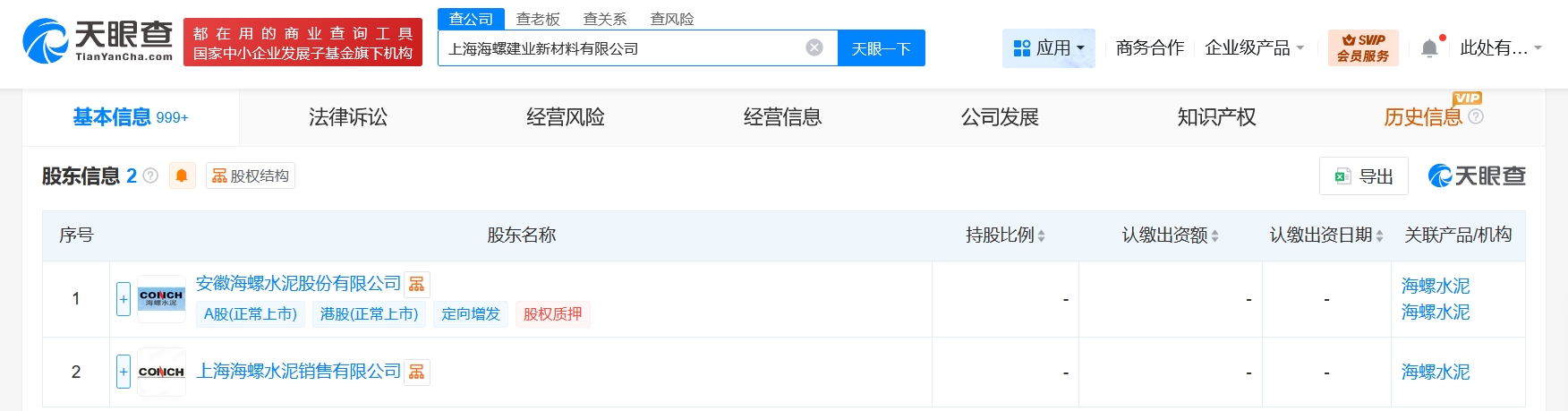 每经AI快讯,天眼查App显示,近日,上海海螺建业新材料有限公司成立,法定代表人为汪剑,注册资本3000万元,经营范围含建筑材料销售、建筑装饰材料销售、水泥制品销售、石棉制品销售、石棉水泥制品销售、砼结构构件销售、轻质建筑材料销售等。股东信息显示,该公司由海螺水泥及旗下上海海螺水泥销售有限公司共同持股。