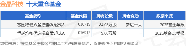 重仓金晶科技的公募基金请见下表: