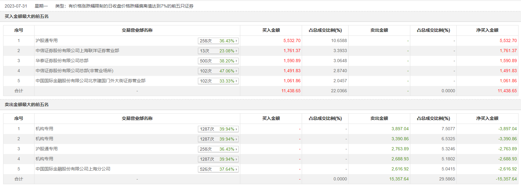 7月31日,新华医疗今日跌6.73%,龙虎榜数据显示,上榜营业部席位全天成交2.68亿元,占当日总成交金额比例为51.62%。其中,买入金额为1.14亿元,卖出金额为1.54亿元,合计净卖出3918.99万元。
