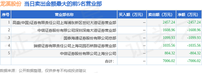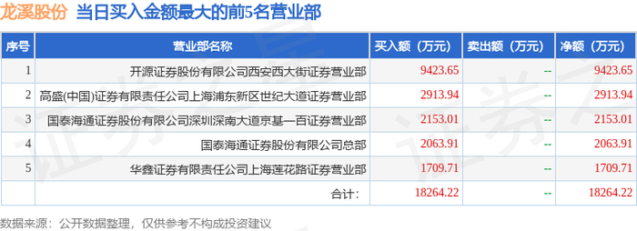 12月25日龙溪股份(600592)龙虎榜数据