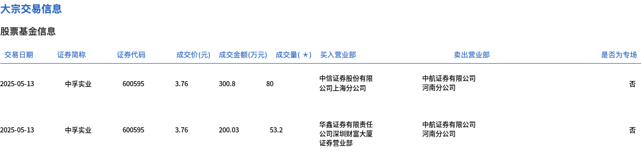 中孚实业今日大宗交易折价成交133.2万股,成交额500.83万元