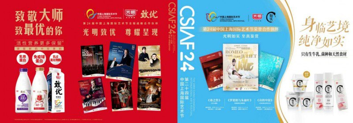 光明致优、光明如实作为全程战略合作伙伴、荣誉合作伙伴独家冠名第24届中国上海国际艺术节多台国际顶尖剧(节)目,以鲜活姿态共塑世界一流艺术节展。