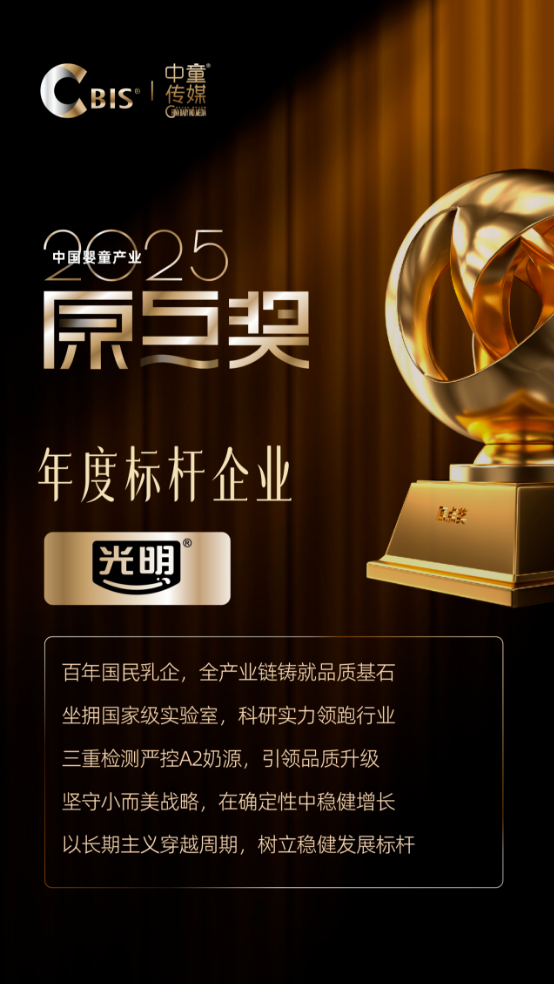 近日,以“智创未来”为主题的第十二届CBIS中国婴童产业大会在北京盛大举行。作为中国婴童产业发展的深度参与者与重要见证者,已成功举办十二届的 CBIS大会,始终紧扣时代脉搏,推动着行业的发展和变革。在备受瞩目的“原点奖”颁奖典礼上,光明乳业凭借在产品创新、渠道赋能、行业贡献等方面的突出表现,一举摘得2025婴童产业原点奖。