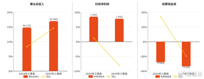 公司营业总收入为45.99亿元,较去年同报告期营业总收入增加5.41亿元,实现3年连续上涨,同比较去年同期上涨13.32%。归母净利润为1.45亿元,较去年同报告期归母净利润减少1311.53万元,同比较去年同期下降8.28%。经营活动现金净流入为-3.22亿元,较去年同报告期经营活动现金净流入减少4849.68万元。