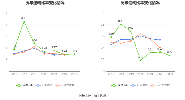 2023年,公司流动比率为1.48,速动比率为0.27。