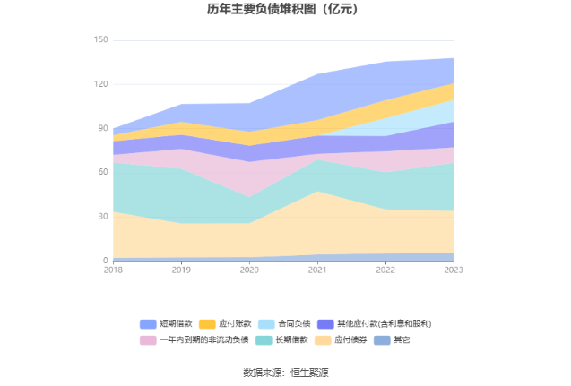 在偿债能力方面,公司2023年年末资产负债率为62.43%,相比上年末上升1.00个百分点;有息资产负债率为40.16%,相比上年末下降3.21个百分点。
