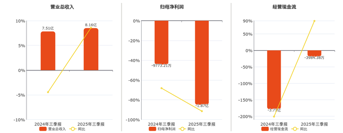 公司营业总收入为8.16亿元,较去年同报告期营业总收入增加6445.62万元,同比较去年同期上涨8.58%。归母净利润为-1.87亿元,较去年同报告期归母净利润减少8942.89万元。经营活动现金净流入为-3984.38万元,较去年同报告期经营活动现金净流入增加3.31亿元。